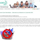 花王のヨーロッパ子会社のHP。コカミドDEA使用中止のロゴが掲載され、代替品の販売促進が行われている。