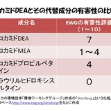 アメリカの環境団体が作った化粧品成分毒性データベースで、コミカドDEAの代替品について毒性を比較